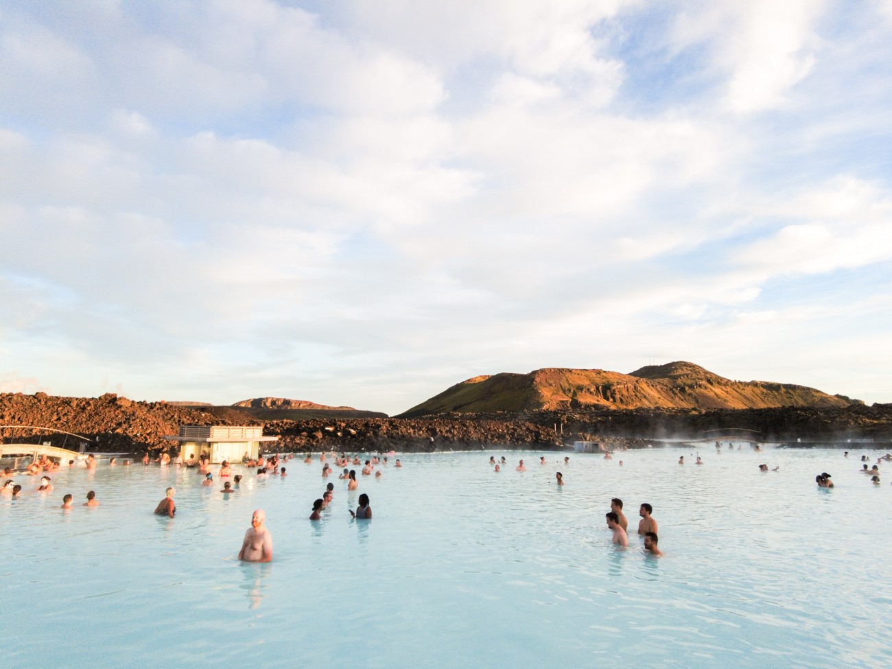 Islanti on tunnettu kuumista lähteistään, joita sijaitsee ympäri maata. Toisin kuin monet muut kuumat lähteet, Blue Lagoon on ihmisen itse tekemä, ainakin osittain. Vesi nimittäin on peräisin läheiseltä voimalaitokselta sivutuotteena, mutta veden mineraalit ovat peräisin maaperästä. Vesi on väriltään sinistä – todella sinistä. Siitä ei näe ollenkaan läpi, mikä tuntui kummalliselta alkuun. Lämpötilaltaan vesi on noin 37 asteista, eli kuumaa! Lokakuinen ilma oli viileä, joten kuuma vesi tuntui aivan ihanalta kroppaa vasten pään ollessa viileässä ilmatilassa.